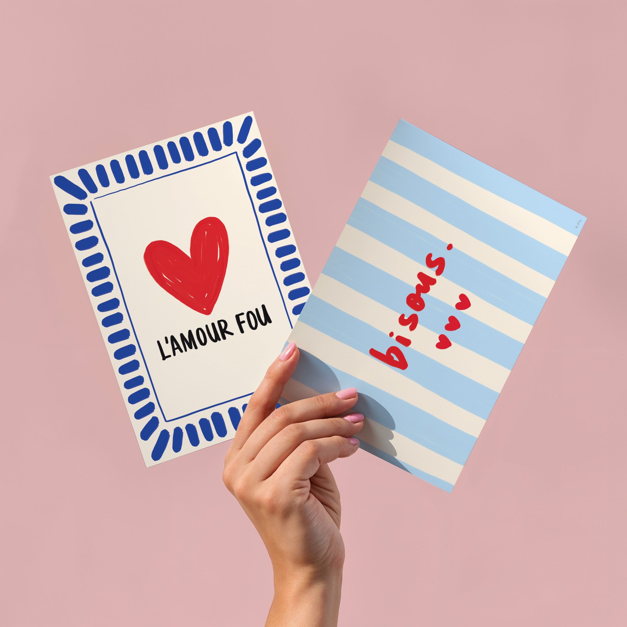 Bisous Art Print – French-Inspired Colourful Wall Art with Hearts