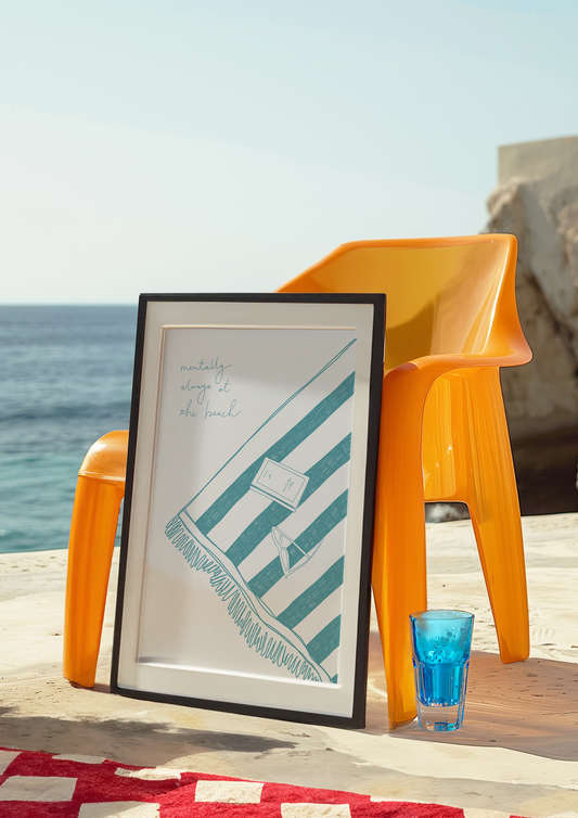 Out of Office – Minimalist Beach Wall Art Print with Palm Trees and Hammock