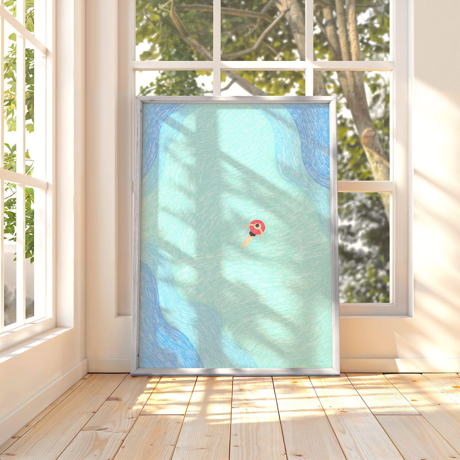 Parfaite pour une déco bord de mer, une salle de bain, une chambre ou pour tous ceux qui rêvent de journées ensoleillées au bord de l'eau. Réalisée à partir de mon illustration originale et imprimée sur un papier d'art de qualité supérieure, cette œuvre apporte une touche de couleur et de dynamisme à n'importe quelle pièce.