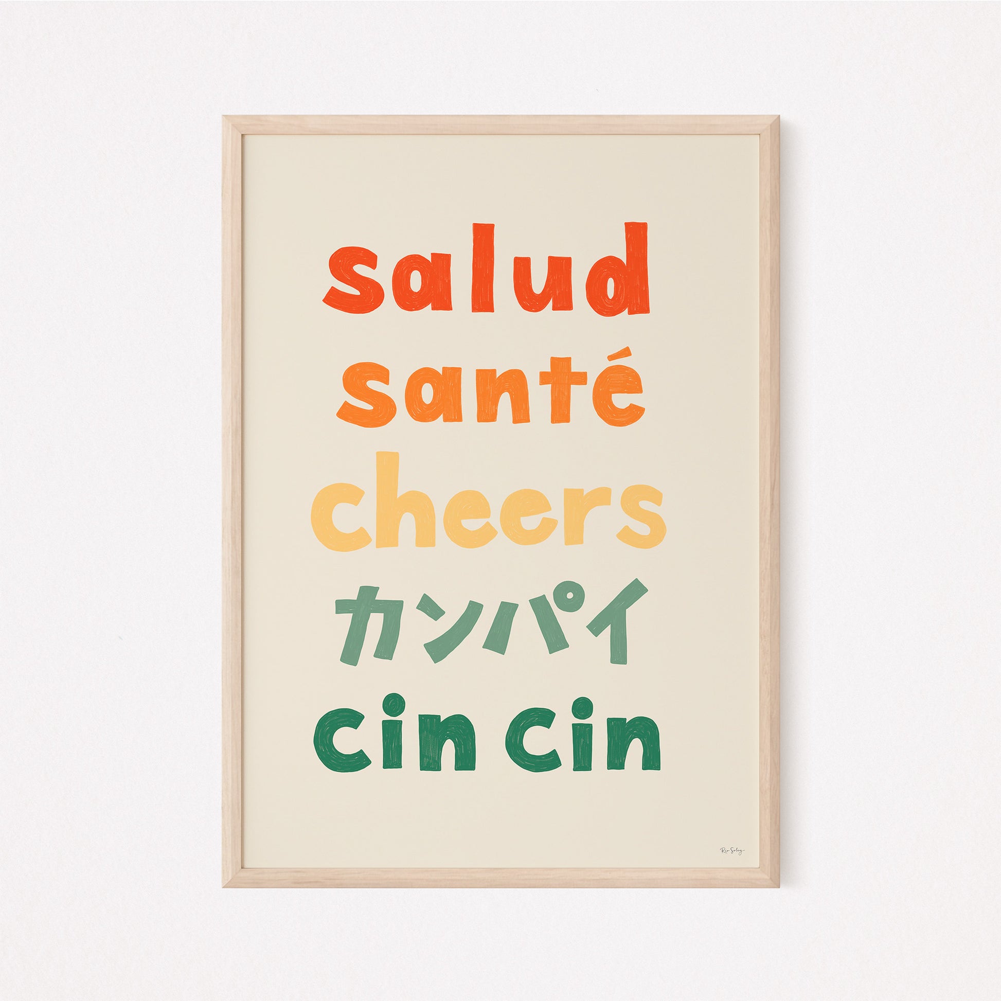 Salud, Santé, Cheers, Kanpai, Cin cin Typography Art Print