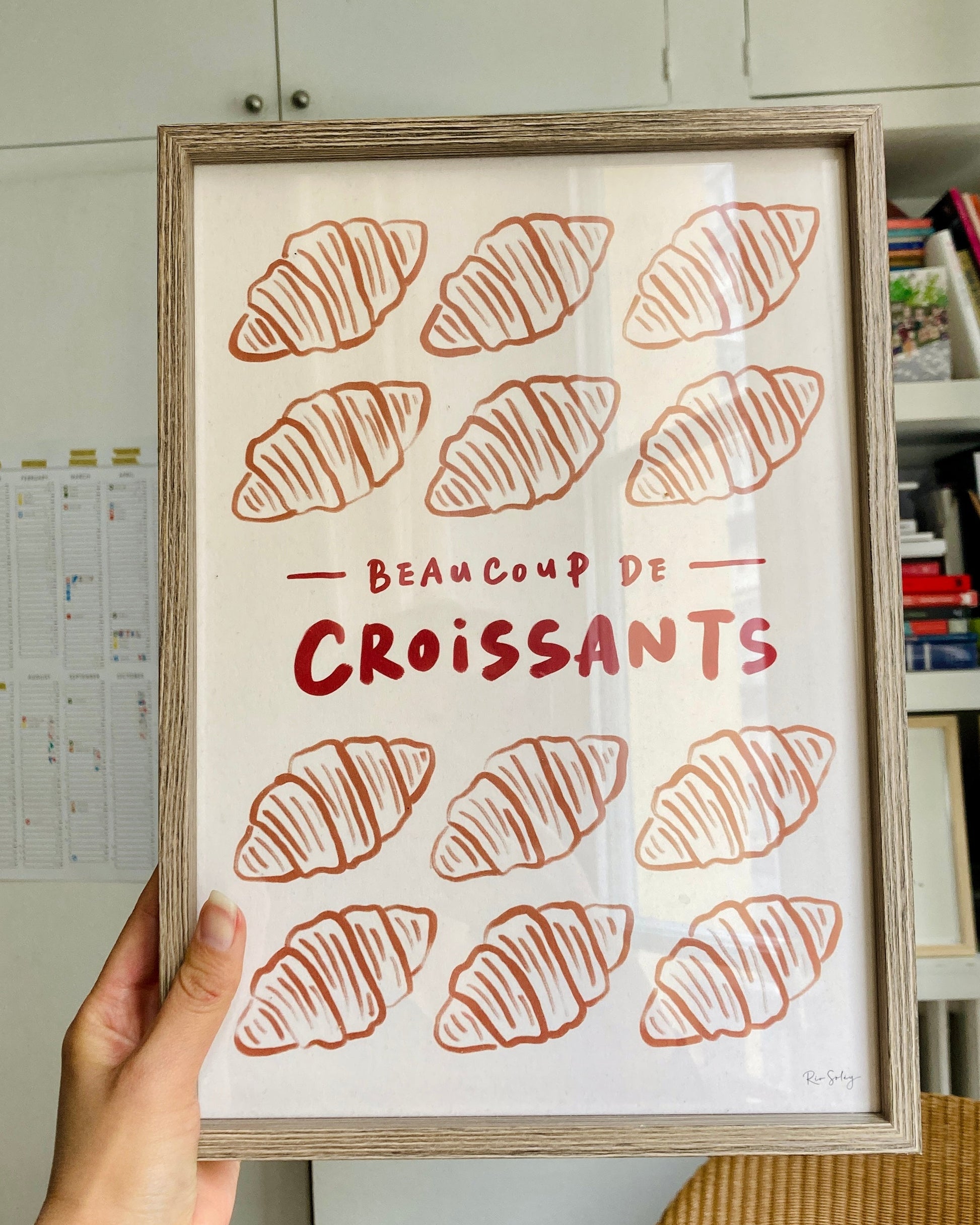 The “Beaucoup de Croissants” art print is a love letter to lazy brunches, flaky pastries, and that just-one-more mindset. Featuring hand-painted croissants and the handwritten text “beaucoup de croissants” (French for lots of croissants), this print captures the simple joy of a French café moment.
