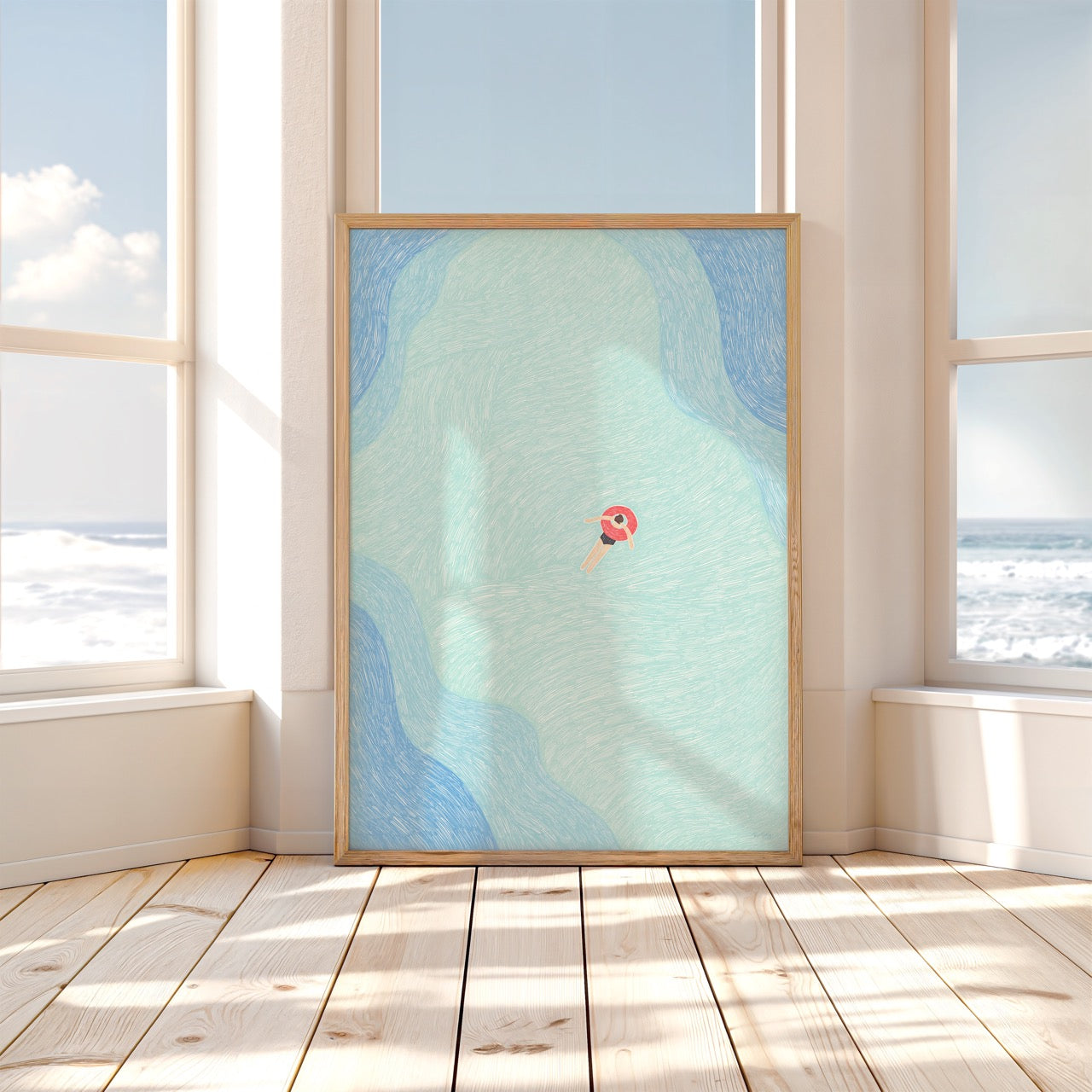 Floating in the ocean illustration art print - this art print is dedicated to those who are happiest by the water, be it the ocean, sea, river, or even a swimming pool.