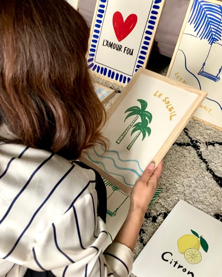 Rendered in a soft oil-paint style with warm neutrals and coastal blues, this print captures that carefree, just-landed-in-the-South-of-France feeling. It’s subtle, chic, and perfectly suited for anyone who decorates with sun-soaked nostalgia and minimalist charm.
