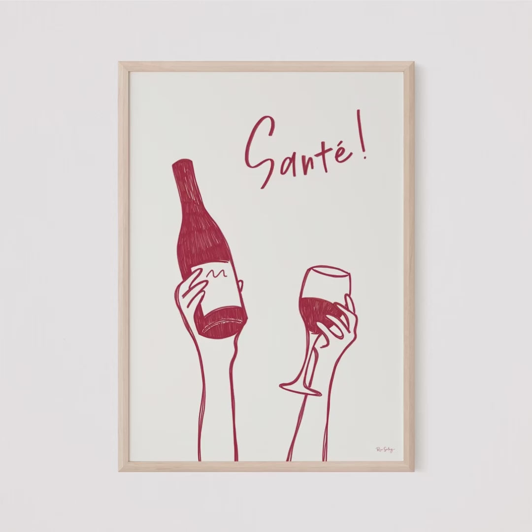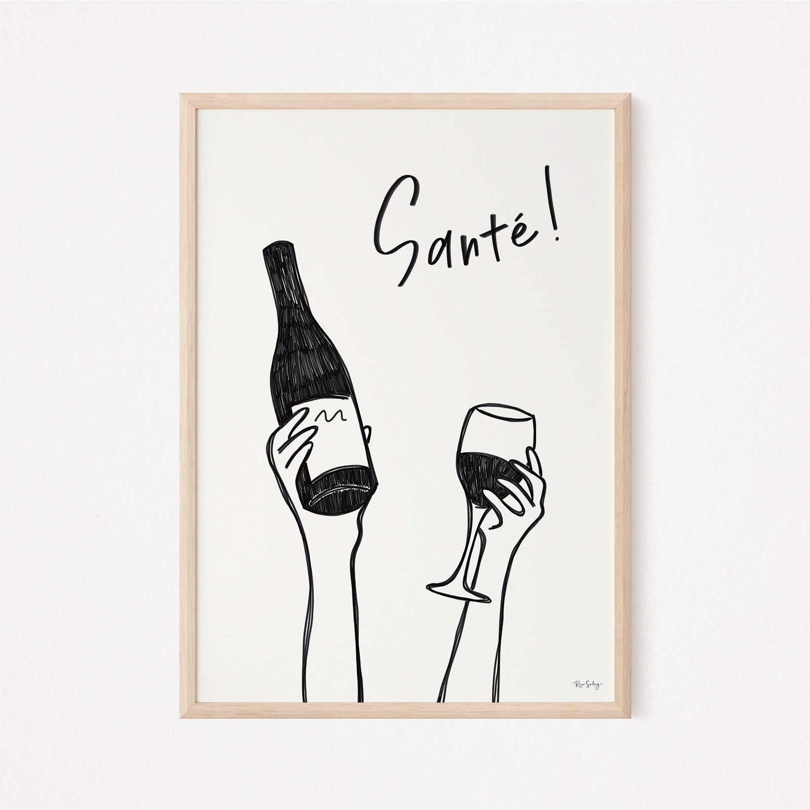 "Santé" French wine wall art for wine lovers and minimalistic decor enthusiasts. Perfect for your kitchen, dining room, or bar cart decor.