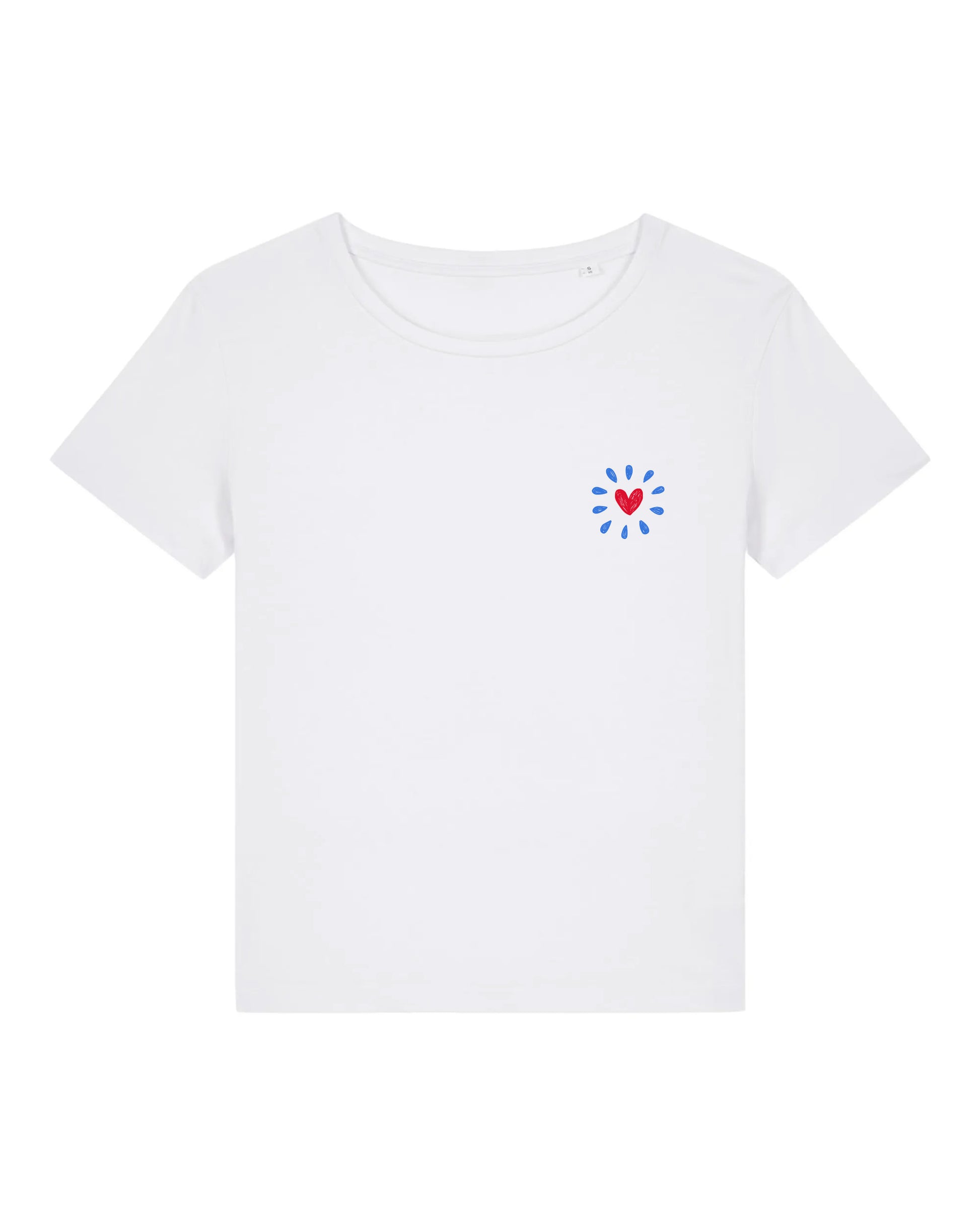 A soft, light-weight, and sustainable T-shirt made from 100% organic cotton. This white women’s tee features a small, hand-drawn red heart on the chest, surrounded by playful blue dots – a sweet and subtle graphic to brighten up your outfit.